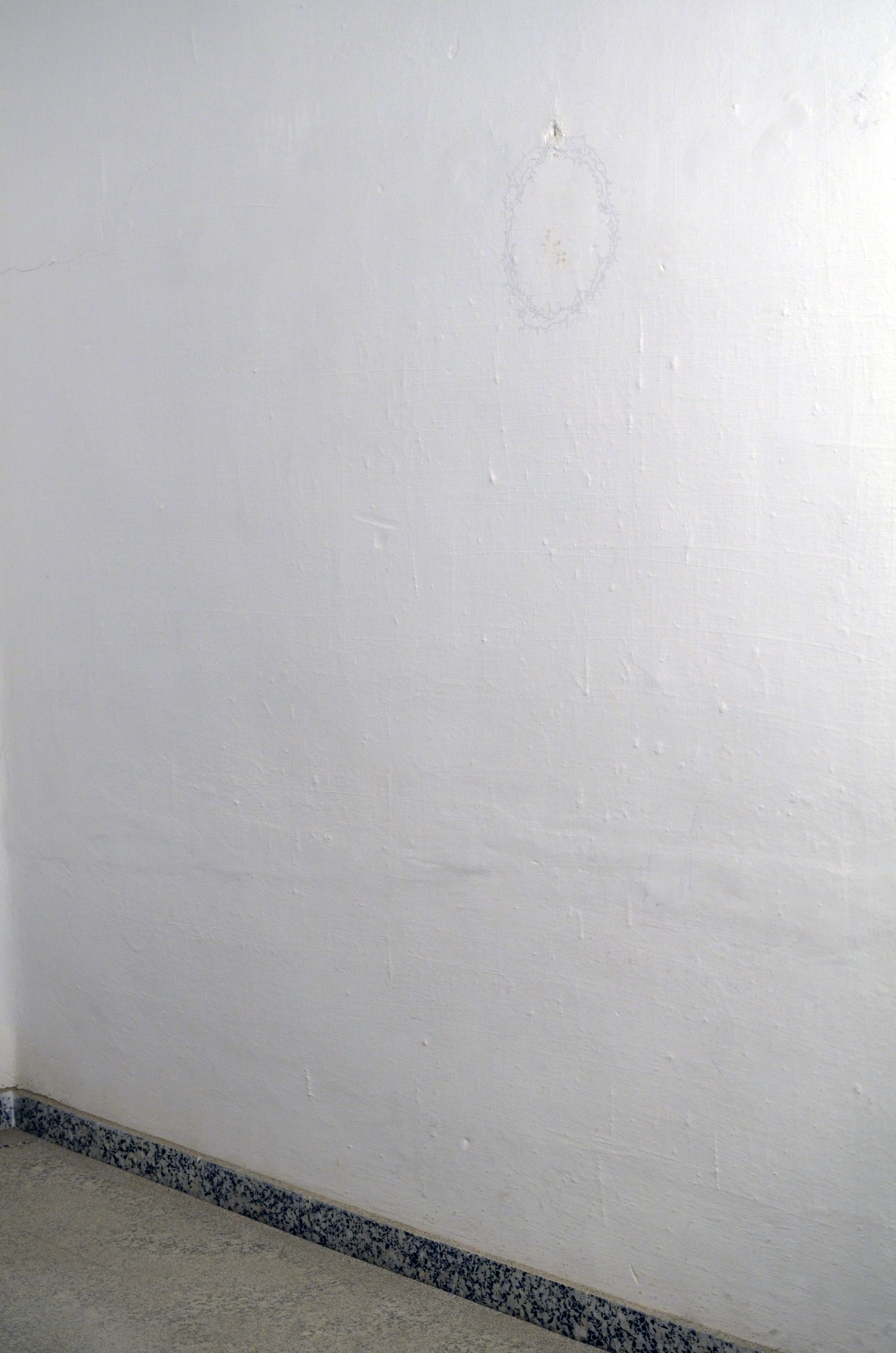 Installation in situ, poussière du couvent, trace du mobilier, peinture blanche.